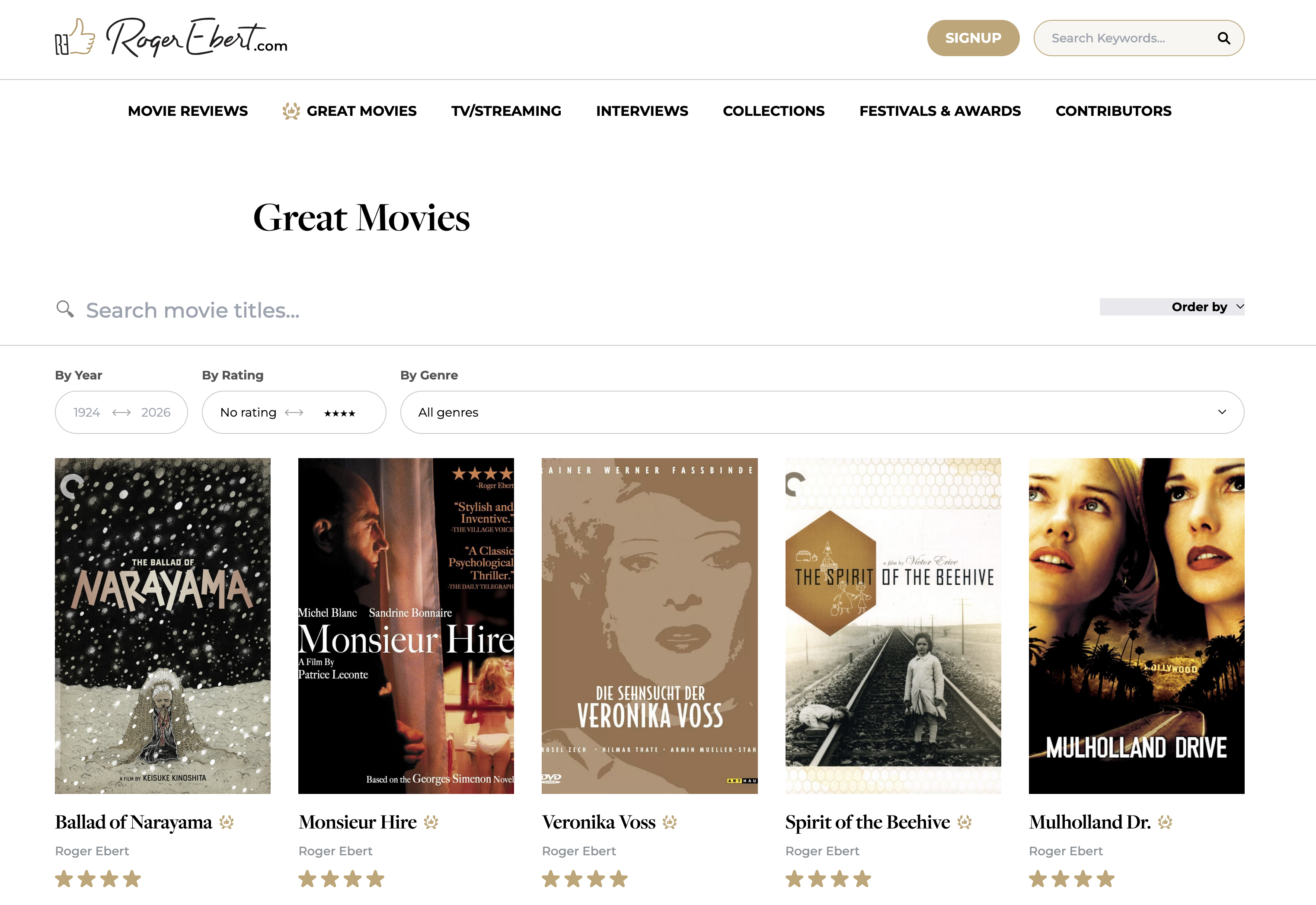 The past few years I've quietly made a resolution that I would watch any film on Roger Ebert's Great Movies list that I had previously not seen. This really shouldn't be hard, I love movies. But sometimes life gets busy - and some of these movies look "too great" to just squeeze into a schedule. But, this year - I'll try again.